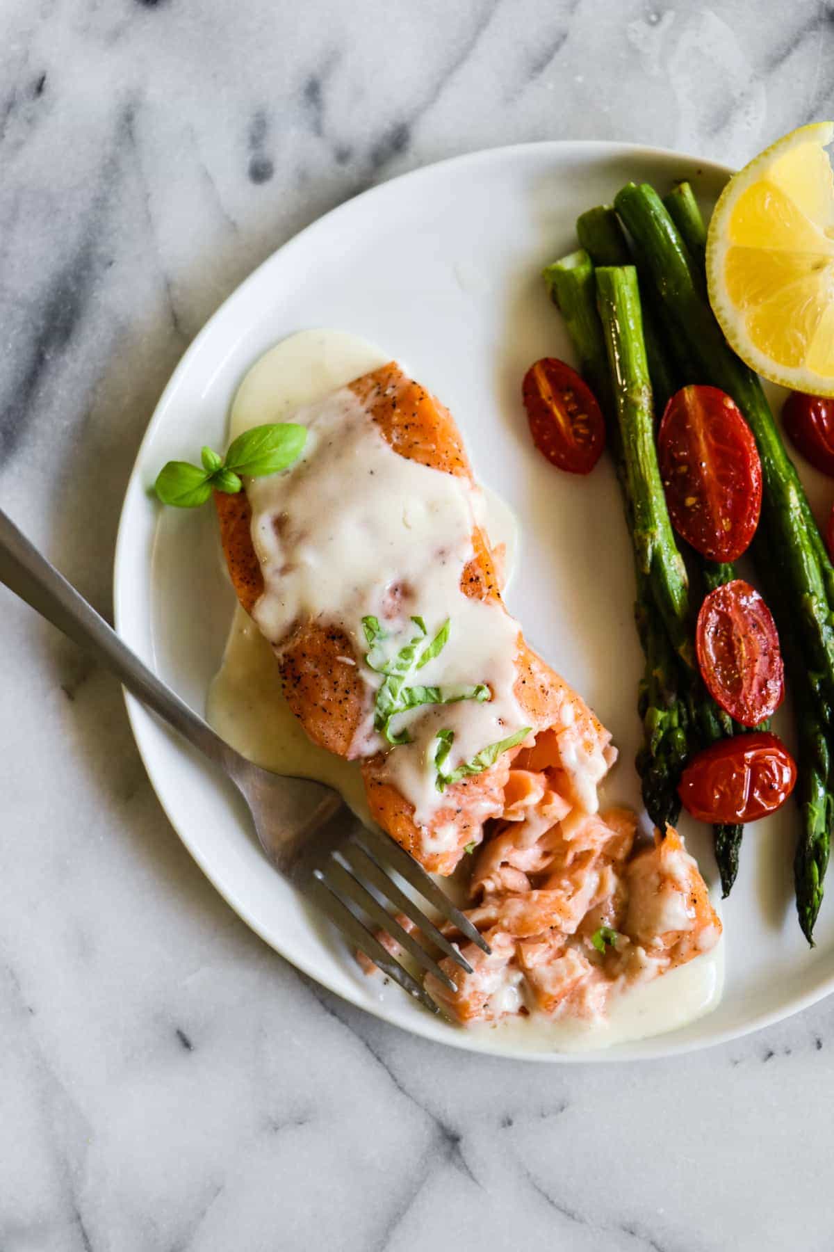 6. Baked Salmon with Creamy Lemon Dill Sauce