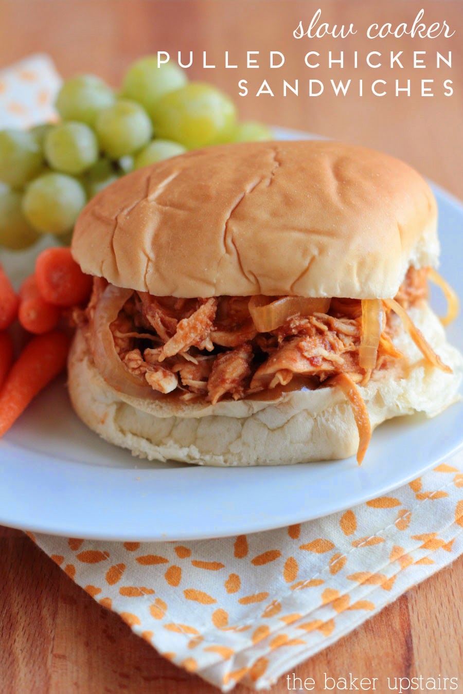 from The Baker Upstairs slow cooker pulled chicken sandwiches. Source Image: www.thebakerupstairs.com. Visit this site for details: www.thebakerupstairs.com